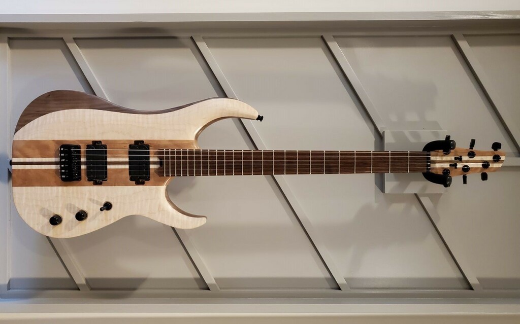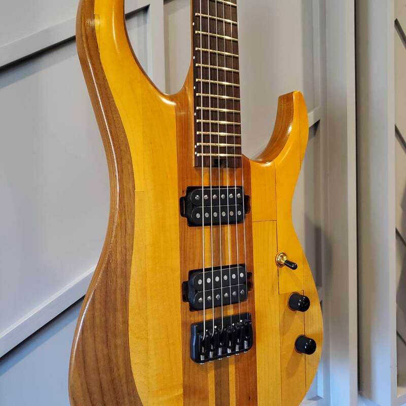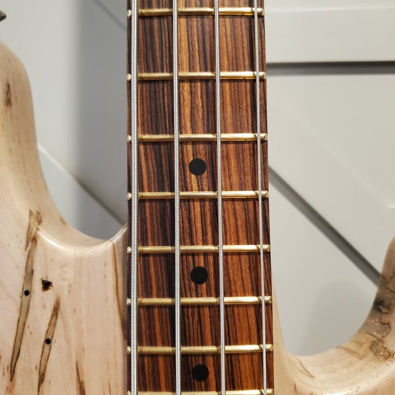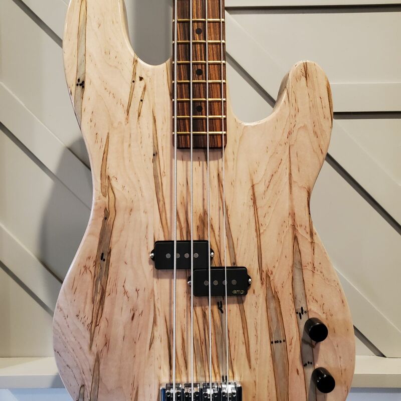 A specially crafted p-bass style guitar made with stunning ambrosia maple, designed and built at Purdue University.