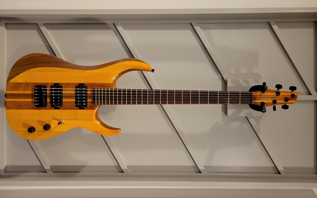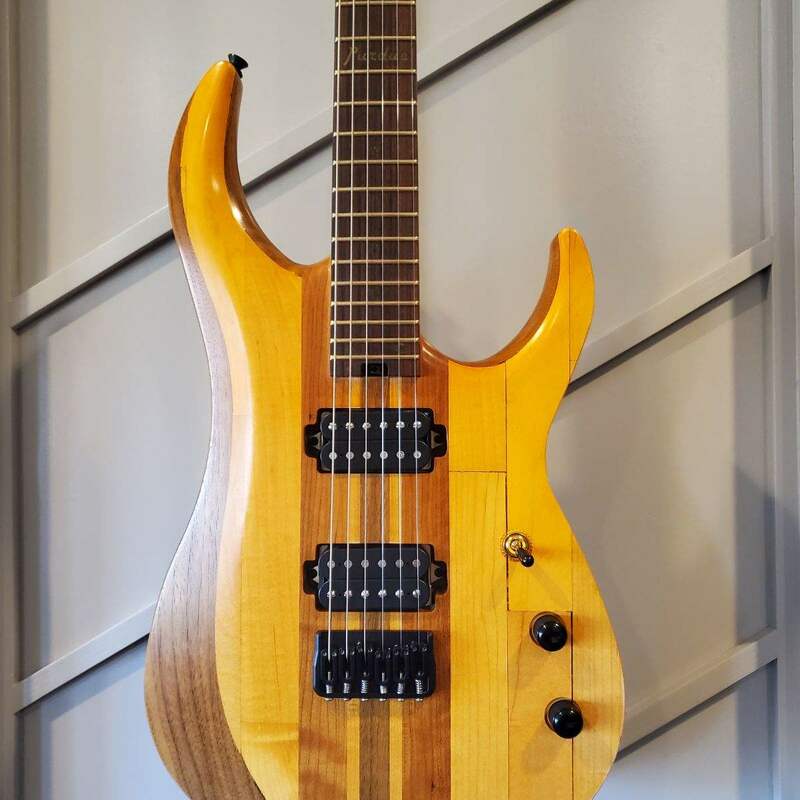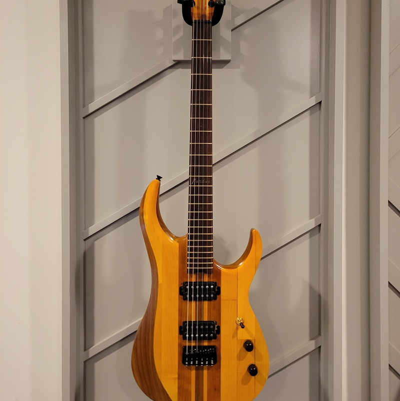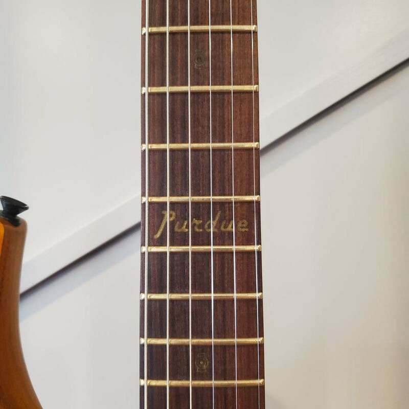 A guitar based on the Mach 1 design, crafted with wood sourced from the iconic Purdue University's Mackey Arena floor.